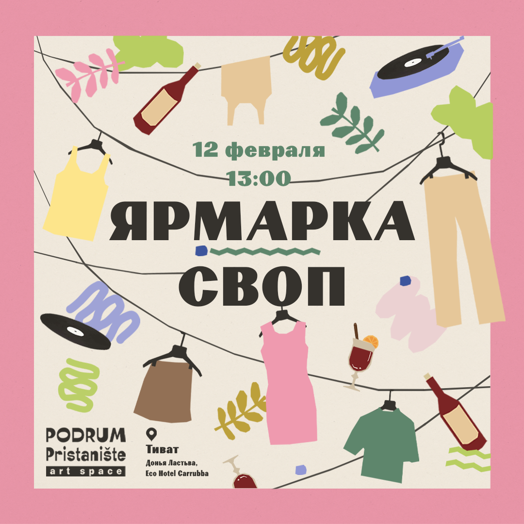 | Мы приглашаем вас 12 февраля в Podrum Pristanište на музыкальную ярмарку-своп и открытие выставки украинских художниц Soft Power. | | | | Мы думаем, давать вторую жизнь вещам – это экологично, и для того, чтобы это было радостней, мы позвали наших друзей-музыкантов. Кроме того, мы организуем свободный микрофон для живого музыкального джема. Разные мастера выразили желание принести свои творения на продажу, будет керамика, украшения, сладости.